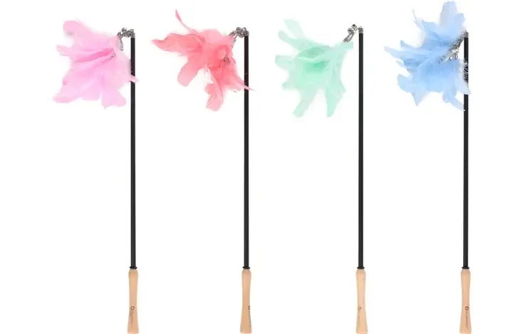 Verwen je kat met deze uitschuifbare hengel met belletje en veren! Stimuleert het jachtinstinct en zorgt voor uren speelplezier. Gemaakt van glasvezel en hout.